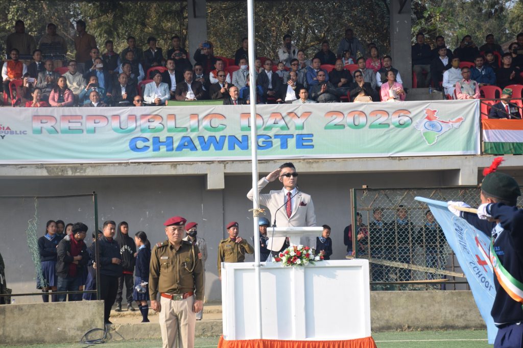 Three NCC units and seven schools participated in the march past. Special cultural items were presented by the Art & Culture Department, CADC, Branch YMA Chawngte-L, and Branch YMA Chawngte-P. The Chief Guest also visited the Community Health Centre, Chawngte, where he distributed gifts to the patients.