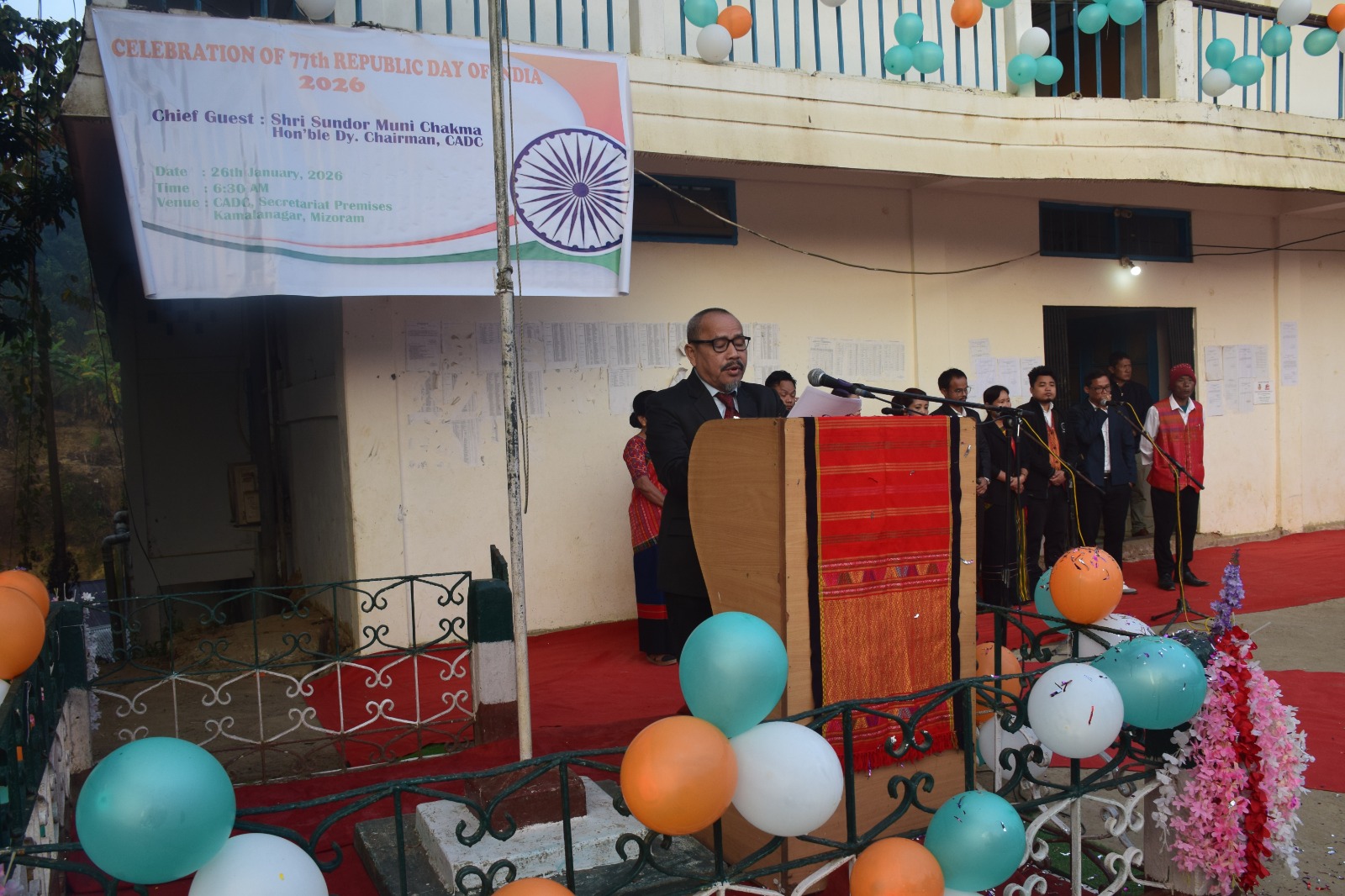 Kamalanagar, 26 January 2026 : The 77th Republic Day of India was celebrated with due solemnity at the premises of the Chakma Autonomous District Council (CADC) Secretariat, Kamalanagar, today.
